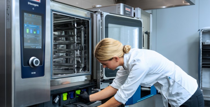 This shift reflects a broader industry move toward resource efficiency — something RATIONAL has long prioritized. Our cooking systems have been shown to reduce electricity use by up to 34 percent and water use by 53 percent compared to conventional equipment. Additionally, innovations like our newly launched iCareSystem AutoDose utilize recyclable cartridges that last for several cleaning cycles, automatically dosing cleaning agents. The re-usability of these cartridges reduce plastic waste by up to 50% and packaging volume by 80%.